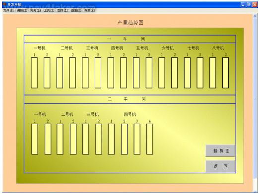 (5)各生產(chǎn)線任意每月產(chǎn)量、任意每天產(chǎn)量、任意每小時產(chǎn)量、任意每分鐘產(chǎn)量可以在電腦上用柱狀圖、實時趨勢曲線的形式表現(xiàn)出來
