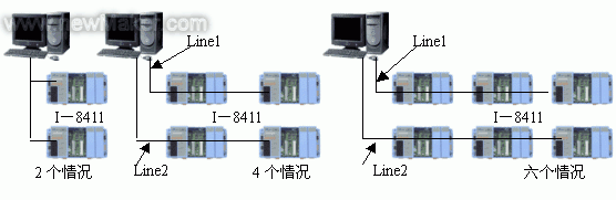 PC-Based PLC與上位機(jī)一般采用RS-485、CAN、ModBus或者Ethernet,假如采用RS-485、CAN、ModBus時(shí),則要合理分配通信口,一般RS-485、CAN、ModBus的通信適配器卡有兩個(gè)口,因此假如控制系統(tǒng)有兩個(gè)I-8000模塊,上位機(jī)可以采用一個(gè)通信口與兩個(gè)下級(jí)控制器通信,但是假如有四、六個(gè)……,最好將其分成兩組,上位機(jī)則采用兩個(gè)通信口分別與其通信,上位機(jī)采用兩個(gè)線程編寫(xiě)通信程序,配置圖見(jiàn)圖1所示。