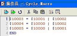 操作員必須通過口令才能登陸控制系統(tǒng),操作員1~3具有不同的響應(yīng)級(jí)別,級(jí)別依次降低,密碼級(jí)別操作員1>操作員2>操作員3,即使用操作員1密碼可以登陸操作員2和操作員3。三個(gè)按鈕互相鎖存,按下其中一個(gè)按鈕后,其他兩個(gè)按鈕均無效,通過宏指令實(shí)現(xiàn)。操作員畫面CYCLE宏如下所示: