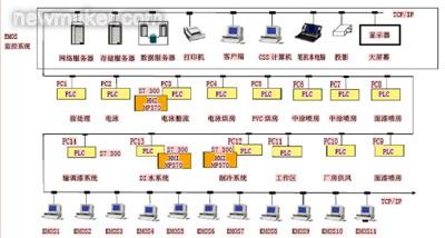 在轎車涂裝生產(chǎn)線上,工藝設(shè)備主要分如下幾大類:前處理設(shè)備、電泳設(shè)備、烘房設(shè)備(電泳/PVC/中涂/面漆/水性漆烘房)、噴房設(shè)備(由供風(fēng)空調(diào)、室體和除渣系統(tǒng)組成)、廠房及工位供風(fēng)系統(tǒng)設(shè)備、輸調(diào)漆/供膠/供蠟系統(tǒng)設(shè)備、制冷系統(tǒng)設(shè)備和DI水(去離子水)系統(tǒng)設(shè)備。由于工藝設(shè)備分布廣泛,且大多分布在不同的樓層層面,有鑒于此,目前國內(nèi)先進(jìn)涂裝生產(chǎn)線工藝設(shè)備大多采用了三層控制網(wǎng)絡(luò)布局(以太網(wǎng)、現(xiàn)場總線和分布式I/O),圖1是目前涂裝工藝設(shè)備較典型的先進(jìn)控制系統(tǒng)圖。