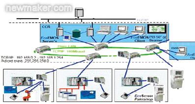 通過分布在涂裝車間內(nèi)或中控室的EMOS監(jiān)控機(jī)可以方便地查看整個涂裝車間工藝設(shè)備的運行狀態(tài),EMOS監(jiān)控機(jī)所監(jiān)控、顯示的具體內(nèi)容如下:各工藝設(shè)備動態(tài)工藝流程圖;水泵、風(fēng)機(jī)等的運行狀態(tài);溫度、濕度和液位等工藝參數(shù)的動態(tài)值,以及歷史曲線;故障報警,故障設(shè)備,故障地址顯示,故障原因顯示,記錄涂裝車間公用動力耗量并制成統(tǒng)計列表。監(jiān)控系統(tǒng)結(jié)構(gòu)圖如圖3所示。