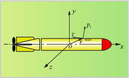 在任何情況下,流體對(duì)魚雷的作用力總是以某種規(guī)律連續(xù)分布于魚雷表面的表面力。當(dāng)然,這種分布規(guī)律是取決于許多因素的。