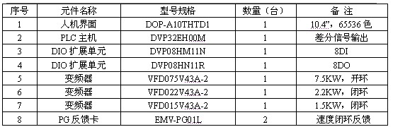 上述表格僅列舉出控制系統(tǒng)主要元器件,此外還包括低壓電器(低壓斷路器、電磁接觸器、電磁繼電器、儲能直流電容器、按鈕、指示燈等)、檢測傳感器(接近開關(guān)、行程開關(guān)等),此處均不予贅述。