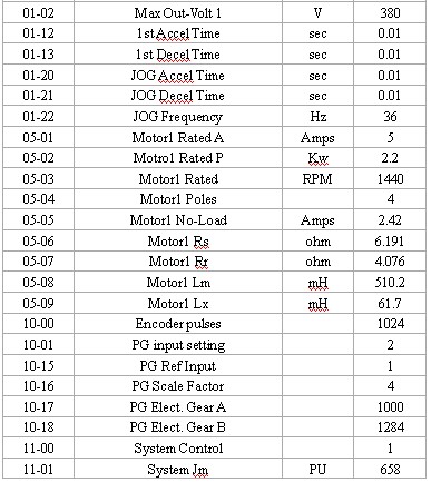 (2)卷繞電機(jī)2.2KW變頻器參數(shù)調(diào)整如表3所示: