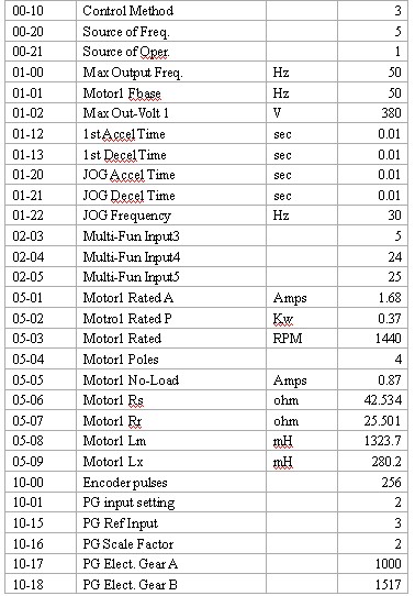 4 變頻器調(diào)試后參數(shù):
