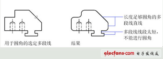 提示:如果想刪除多段線上的圓角和弧線,也可以使用“多段線(P)”選項(xiàng),只需將圓角設(shè)置為0,F(xiàn)ILLET 將刪除該弧線段并延伸直線,直到它們相交。