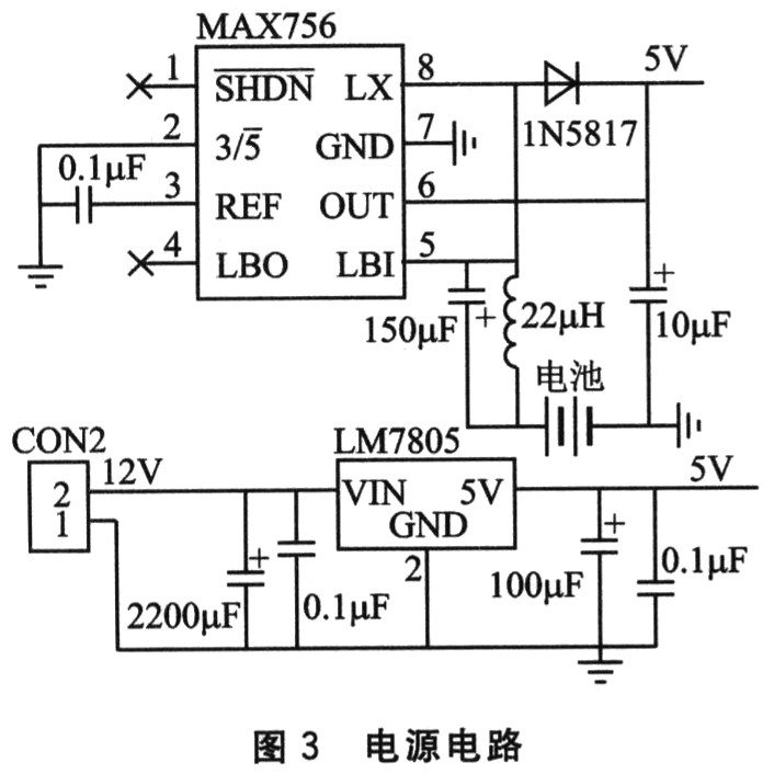 MAX756組成的3.6V鋰電池供電升壓到5V輸出的電路