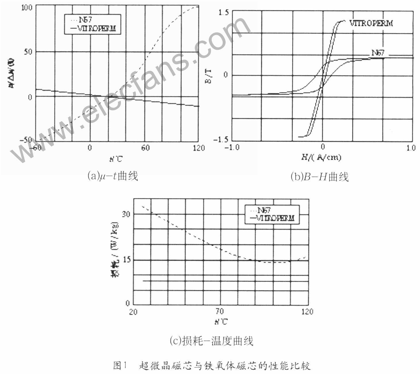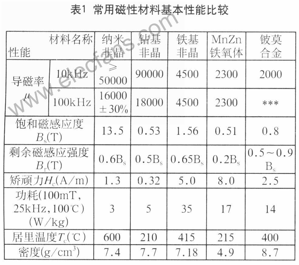 研究。對(duì)高頻磁元件所用磁性材料有如下要求:損耗小,散熱性能好,磁性能優(yōu)越。適用于兆赫級(jí)頻率的磁性材料為人們所關(guān)注,納米結(jié)晶軟磁材料也已開發(fā)應(yīng)用。