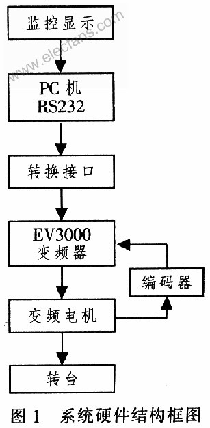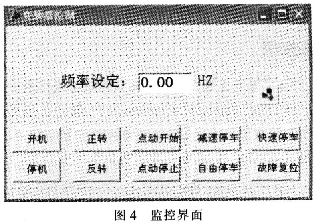 4 為了實現(xiàn)對電機(jī)的可靠控制,并使其操作簡單,易于控制,運行狀態(tài)易于觀察,提高設(shè)備自動化程度,設(shè)計出一種基于EV3000變頻器,靈活實用的變頻電機(jī)調(diào)速監(jiān)控系統(tǒng)。該系統(tǒng)采用艾默生公司生產(chǎn)的EV3000