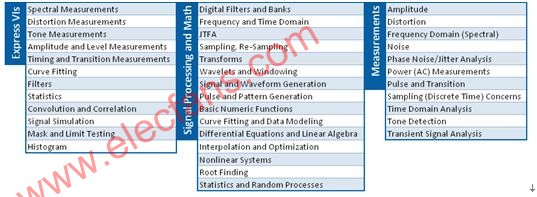 表1. LabVIEW數(shù)含上千個內(nèi)置的工程領域?qū)S梅治龊瘮?shù)。