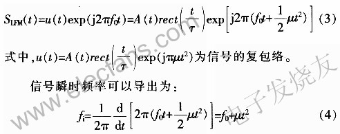 等幅線性調(diào)頻矩形脈沖信號(hào)的復(fù)數(shù)表達(dá)式為: