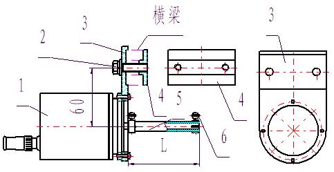 (4)用六角頭螺栓M8X30固定在橫梁組件上。彈性連接套(5)分別為L=53、60、73三