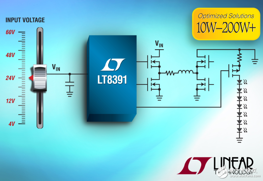 Linear公司的LT3791是同步的四開關升壓-降壓LED驅動控制器,可使VIN高于、低于或等于VOUT,效率高達98.5%,輸入電壓4.7V~60V,輸出電壓0V~60V,LED電流精度±6