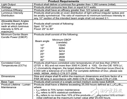 表2 DOE L-Prize對于燈具規(guī)格要求