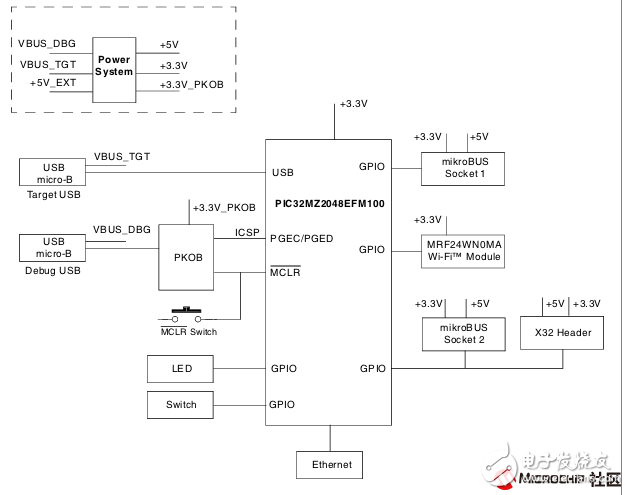 PIC32以太網(wǎng)入門工具包II該開發(fā)板為Microchip 的32位單片機(jī)產(chǎn)品線提供了