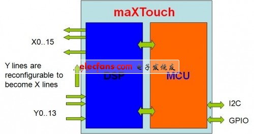 創(chuàng)新的 maXTouch 技術(shù)是基于專為觸控應(yīng)用而最佳化之Atmel XMEGA AVR微控制單元CPU的一種版本,它附加了新型的完全整合型類比傳感前端,以擷取來自觸控螢?zāi)?a target="_blank">傳感器的電荷圖形。兩個芯片上專用DSP則可用來為X-Y矩陣位置進(jìn)行精確計算。