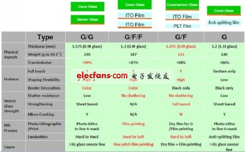 - G/F/F 與 G/F 用 ITO Film 材料取代 ITO 玻璃,使產(chǎn)品更加輕,更加薄。更能符合可攜式產(chǎn)品的需求。