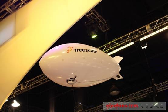 展示飛思卡爾的Xtrinsic 傳感器特點(diǎn)的小型飛船在展場(chǎng)飛行。