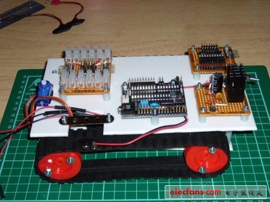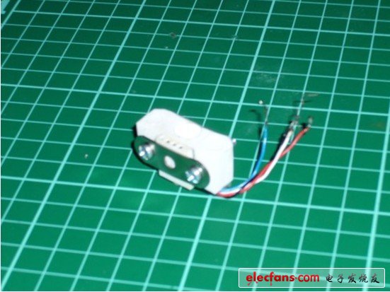 接下來(lái)是我一直糾結(jié)的問(wèn)題,我究竟該怎樣把超聲波傳感器連接到電機(jī)上,并要有一定的角度保證其向前,并要盡量使傳感器在更低的位置,以保證它能看到更小的物體,從而能夠避開。我最后決定在一個(gè)塑料疊層板上DIY,將那些板以一定的角度連接,并連上一個(gè)4pin的接收器,在上面加些東西使其頭部能夠輕易轉(zhuǎn)動(dòng),在一定位置鞏固螺栓,以便可以在上面使用環(huán)氧樹脂膠。接下來(lái)就是線的問(wèn)題,相對(duì)于我的剝線器來(lái)說(shuō),這些線實(shí)在太小了。但我最終用打火機(jī)搞定。然后就連接上了相對(duì)應(yīng)的線路。記住要用到適合的線。否則焊接的時(shí)候你就會(huì)感到悲劇了。