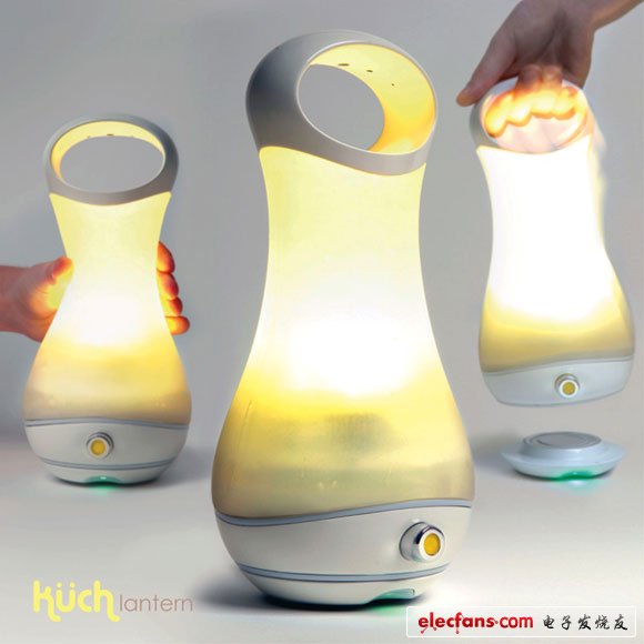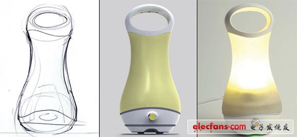這款燈由來于我們以前的手提燈籠,目的是想傳承一種心境,月明風(fēng)清時,閑庭信步,手提暖暖的燈籠漫步于夜色小路上。設(shè)計作品運用現(xiàn)代的技術(shù)加以升華,一樣是溫暖的光線,但卻不會被風(fēng)吹滅,使用時擠壓一下瓶頸處就亮了,還有一個小旋扭可以控制光線的強弱,充電也非常的方便,有一個接通電源的配套底座,放上面就可以自動充電了。