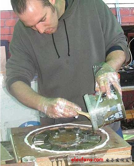 磁鐵排列成一圈——作為轉(zhuǎn)子,倒入樹(shù)脂并固化