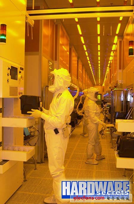 整個工廠的無塵房間和機器數(shù)量是非常的可觀的,因為制造一個CPU晶圓片的工藝過程是非常的復(fù)雜的。