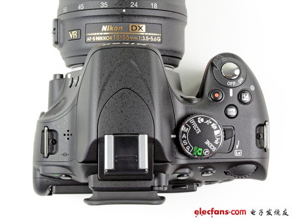 照相機(jī)的上面不包括與信息有關(guān)的LCD,像D90。 反而,我們得到在右邊的轉(zhuǎn)動(dòng)的模選擇器。: