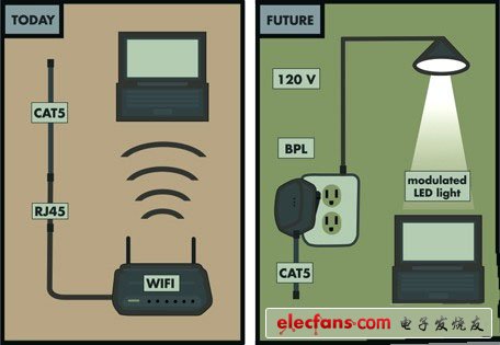在過去,一個區(qū)域要實現(xiàn)無線信號全覆蓋,只能擺上很多個無線路由器。如今,科學家們能在小區(qū)電線接入的地方直接承載通訊信號,屆時不論是小區(qū)的路燈,還是每一家的照明燈,都能發(fā)送上網(wǎng)信號。