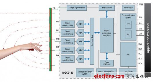 MGC3130芯片是人機(jī)界面解決方案的新選擇,可在電場(chǎng)中偵測(cè)手勢(shì)的變化。手勢(shì)被電場(chǎng)感應(yīng)到之后,原本需要以每毫秒精確測(cè)量數(shù)百個(gè)位置的手勢(shì)變化,并將這些數(shù)據(jù)轉(zhuǎn)換為簡(jiǎn)明的手勢(shì)描述,這一思路就可以徹底摒棄了。事實(shí)上,有機(jī)器簡(jiǎn)單的方法可以采用?;陔妶?chǎng)的手勢(shì)感應(yīng)器輸出就是一種手勢(shì)的完美解讀,能夠極度簡(jiǎn)化計(jì)算機(jī)對(duì)手勢(shì)的理解。