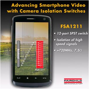 文字介紹 FSA1211是一款12埠、單刀單擲 (SPST) 模擬開關(guān),在雙相機(jī)應(yīng)用(dual camera application) 中,可將高速總線與寄生成分相互隔離開來。智能型手機(jī)配備有雙相機(jī),而隨著這些相機(jī)的分辨率越來越高,寄生電氣成分在訊號(hào)衰減和有害EMI的產(chǎn)生方面,扮演著關(guān)鍵性的角色。