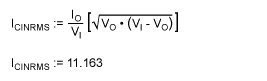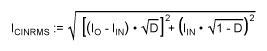 To simplify further, let D = VO/VIN (since V0 >> VLS, and VIN + VLS - VHS ~ VIN), and IIN = VO × IO/VIN (since efficiency η ~ 1), so that the ICINRMS equation above becomes:![]()