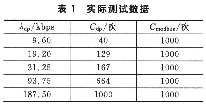 ??? 從表中可以看出,λdp=187.5 kbps時(shí),Cdp=Cmodbus,實(shí)際上,此時(shí)已經(jīng)出現(xiàn)了PROFIBUS-DP丟包現(xiàn)象。這也解釋了上邊所提到的如果λdp超過(guò)一定值,若采用中斷方式處理PROFIBUS-DP的輸出數(shù)據(jù),勢(shì)必影響正在進(jìn)行的MODBUS的通信。