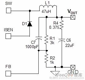 走線以充當(dāng)一個(gè)鎮(zhèn)流電阻,10~15mΩ的電阻便足以對穩(wěn)壓器的輸出進(jìn)行鎮(zhèn)流,并提供上佳的均流作用。由于現(xiàn)在并聯(lián)了多個(gè)器件,因此需要采用一個(gè)輸出電容器以實(shí)現(xiàn)穩(wěn)壓器的穩(wěn)定。輸出電壓以相同的方式進(jìn)行調(diào)節(jié)(采用