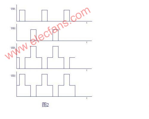 壓之和約為2UI.在實際中,變壓器的漏感會產(chǎn)生很大的尖峰電壓加在S2 兩端,從而引起大的關(guān)斷損耗,變換器的效率因受變壓器漏感的限制,不是很高。在S1和S2 的漏極之間接上RC緩沖電路,也稱為吸收電路