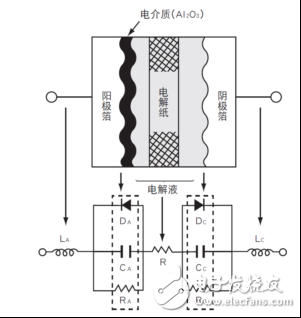6211 其他的組成成分包括浸有電解液的電解紙,和電解液相連的陰極箔。綜上所述,鋁電解電容器是有極性的非對稱構(gòu)造的元件。兩個(gè)電極都使用陽極鋁箔的是兩極性(無極性)電容。