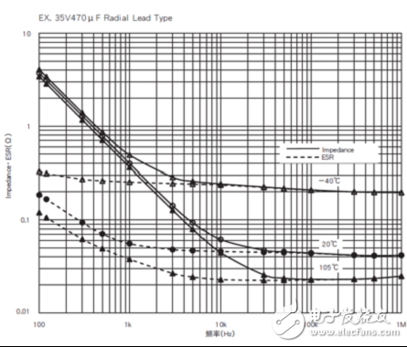 繼續(xù)增加達(dá)到中頻范圍時(shí)電抗降至ESR的值。當(dāng)頻率達(dá)到高頻范圍時(shí)感抗變?yōu)橹鲗?dǎo),所以阻抗是隨著頻率的增加而增加。 開關(guān)電源中的輸出濾波電解電容器,衡量高頻鋁電解電容優(yōu)劣的標(biāo)準(zhǔn)是“阻抗-頻率”特性,要求在