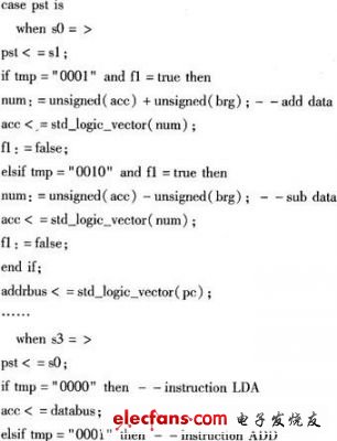 3603 基于以上討論,可以看出ASIP+FPGA設(shè)計模式可以從很大程度上解決引言中提到的兩個難題。為了進行更深入的研究,我們對該設(shè)計模式進行了嘗試,用VHDL硬件描述語言在FPGA上實現(xiàn)了一個8位微處理器軟