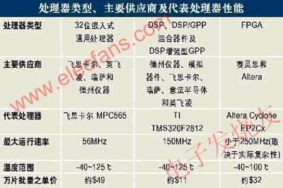 相反地,針對引擎和剎車控制等關(guān)鍵控制系統(tǒng)的處理器一般都是中等性能的處理器。采用較大的芯片制造工藝(如0.18或0.25微米)比較容易滿足高溫等惡劣工作環(huán)境的要求,而且控制應(yīng)用的處理速度要求一般不太高。因此,相對較低的最大處理器時鐘速度(40至150 MHz)和較大的制造工藝是這類應(yīng)用的最佳選擇。然而,這類應(yīng)用對處理性能的要求也在不斷提高,處理器供應(yīng)商必須調(diào)整策略,以便在滿足高溫要求的同時獲得更高的性能。??