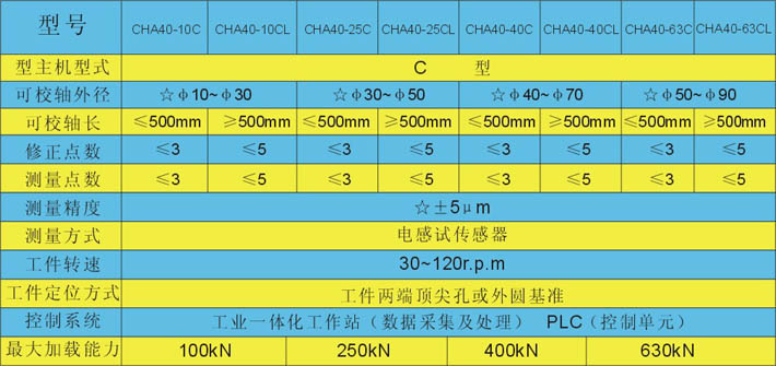 CHA40-C 精密液壓校直機(jī)主要技術(shù)指標(biāo)見下表