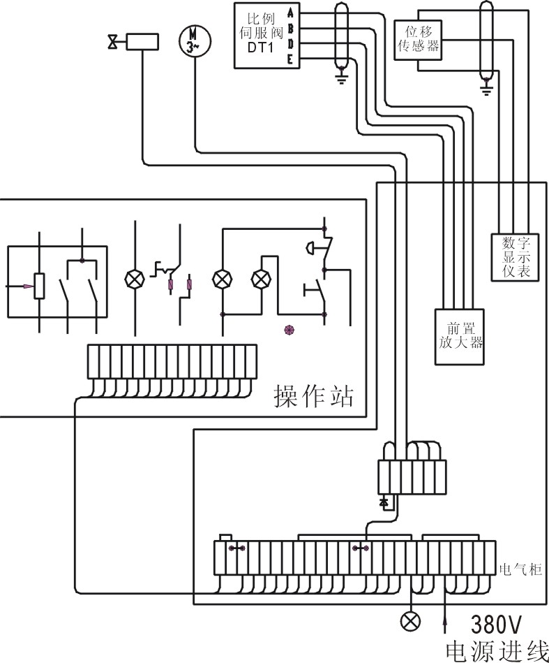 可編程控制中心是校直機(jī)的關(guān)鍵部分。校直機(jī)繁雜有序的動作都是在它的程序控制下執(zhí)行完成的。PLC與計(jì)算機(jī)處理系統(tǒng)相互通訊并協(xié)調(diào)控制各執(zhí)行部件有序的進(jìn)行夾緊、測量、校直部位選擇、加壓實(shí)施修正等動作。系統(tǒng)一般都采用SIEMENS系列可編程控制器,電氣操作和執(zhí)行元件主要采用進(jìn)口品牌產(chǎn)品,工作穩(wěn)定可靠。根據(jù)不同客戶的需要可以配套工控機(jī)控制系統(tǒng),可以任意擴(kuò)展的工件參數(shù)存儲,滿足了一機(jī)多用的要求。完善的故障自診斷系統(tǒng)可使操作人員迅速排查設(shè)備故障。測量動態(tài)波形顯示可以非常直觀的發(fā)現(xiàn)工件的圓度誤差、毛刺、凹坑等工件表面缺陷。電氣控制原理圖描述如圖所示: