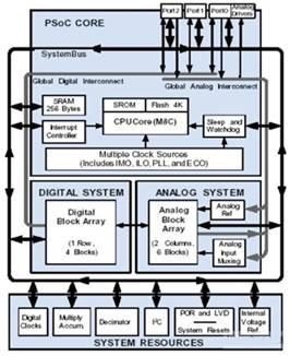PSoC的內(nèi)部框圖結(jié)構(gòu)及資源