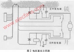 系統(tǒng)通過控制電機(jī)的正反轉(zhuǎn)來實(shí)現(xiàn)對(duì)車輪鎖定和開鎖功能,實(shí)現(xiàn)電路如圖2所示。主回路根據(jù)控制器的指令,LOCK、OPEN分別控制繼電器K1、K2的閉合,實(shí)現(xiàn)電機(jī)的正轉(zhuǎn)、反轉(zhuǎn),進(jìn)而控制車輪剎車油路,從而達(dá)到四輪抱死或者松開的目的,實(shí)現(xiàn)了防盜功能。為了防止電機(jī)過旋轉(zhuǎn),設(shè)置了限位開關(guān)STB1、STB2,實(shí)時(shí)地將信號(hào)反饋給控制器,使系統(tǒng)能夠穩(wěn)定地工作。