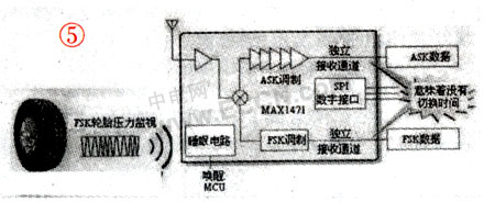 從圖中看出MAX1471也可用在汽車輪胎壓力監(jiān)視系統(tǒng)中的接收器。