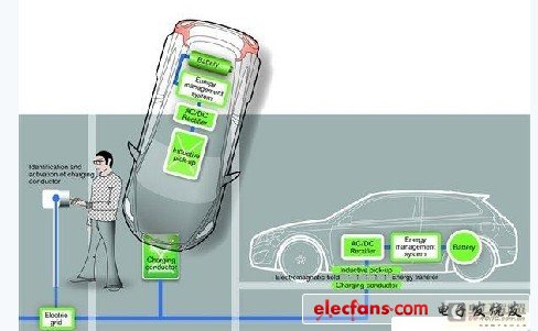 在感應(yīng)式充電系統(tǒng)中,充電板被埋在地下,充電板由可產(chǎn)生電磁場的線圈組成,當(dāng)汽車停放在充電板上方時(shí),電能會(huì)以交流電的形式從充電板直接傳給汽車的感應(yīng)接收器,然后在汽車內(nèi)的電壓轉(zhuǎn)換器中轉(zhuǎn)變?yōu)橹绷鳎o汽車的蓄電池組完成充電,它的先進(jìn)之處在于整個(gè)充電過程都不需要汽車與充電板的直接接觸。