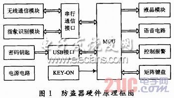 主要工作原理如下:車主停車熄火后,防盜器進(jìn)入鎖定狀態(tài)。此時如果汽車鑰匙不在ON位,就不能進(jìn)行指紋識別;只有當(dāng)汽車鑰匙在ON位,才可用指紋識別解鎖防盜器并自動點(diǎn)火。在鎖定狀態(tài)下,汽車的油路、電路等被切斷,汽車鑰匙無法點(diǎn)火;如果強(qiáng)行剪斷指紋采集模塊和控制盒的連線,或者不識別指紋而強(qiáng)行用汽車鑰匙點(diǎn)火,汽車會通過鳴號、閃燈和無線通信網(wǎng)絡(luò)報警。在鎖定狀態(tài)插入密碼鑰匙可進(jìn)入解鎖狀態(tài),并可根據(jù)LCD和語音提示通過小鍵盤進(jìn)行指紋注冊/刪除、手機(jī)號碼設(shè)置和應(yīng)急點(diǎn)火等操作?! ?/span>