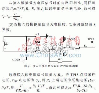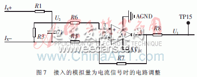 (2)當(dāng)接入的模擬量為電流信號時,電路調(diào)整如圖7所示。
