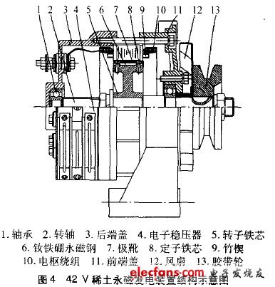目前稀土永磁材料已經(jīng)具備了較高的性價(jià)比,現(xiàn)代電力電子技術(shù)也為研制出斬波式的電子穩(wěn)壓器奠定了基礎(chǔ)。因此,利用稀土永磁材料和現(xiàn)代電力電子元件研制出結(jié)構(gòu)簡(jiǎn)單、發(fā)電效率高、壽命長(zhǎng)的42V稀土永磁發(fā)電機(jī)具有較高的研究?jī)r(jià)值和廣闊的推廣前景。