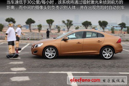 在沃爾沃S60身上,還可以選裝PedestrianDetection行人安全系統,它依靠180m距離的毫米波雷達和攝像頭共同作用,可以探測身高為80cm以上的行人,在車速低于35km/h時,如果有行人進入車輛的行進路線,車輛會進行全力剎車,盡可能避免或者減小事故發(fā)生的機率,若是行駛速度高于35km/h,車輛也會自動減速來規(guī)避風險,該系統能夠同時識別10個行人。