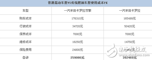 卡羅拉雙擎10年15萬公里總使用成本:176310+34720+7000+16250+24800=259080元