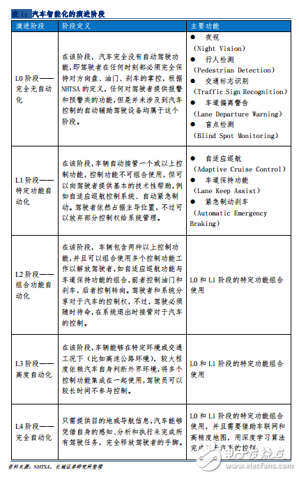 隨著人工智能的蓬勃發(fā)展,自動(dòng)駕駛正漸行漸近。依據(jù)汽車智能化程度和人類在駕駛過程中參與度的不同,美國(guó)機(jī)動(dòng)車工程師協(xié)會(huì)(SAE)將自動(dòng)駕駛分為 6 級(jí)(L0-L5)、美國(guó)高速公路交通安全管理局(NHTSA)將自動(dòng)駕駛分為 5 級(jí)(L0-L4)。